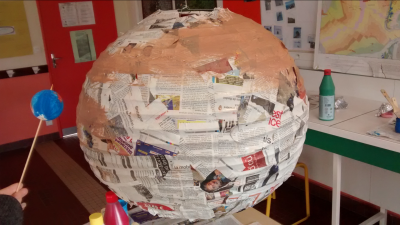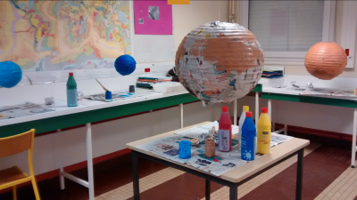 Un élève de 5e explique « On a collé du journal autour des lampes en papier de riz pour éviter qu’elles ne percent. Puis on les a peintes en se servant de photos des planètes pour pouvoir respecter au maximum leur couleur »