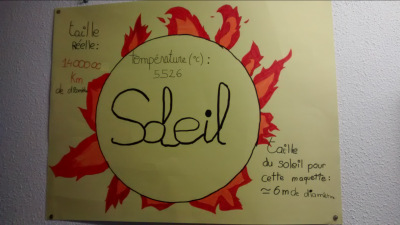 Après avoir découvert les astres qui constituent notre système solaire, les élèves ont calculé les diamètres de chaque planète dans la maquette, du Soleil et de quelques satellites si la plus grosse planète, Jupiter avait un diamètre de 60 cm.